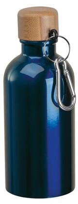 Kulacs alumínium 400ml-es, karabínerrel, bambusz kupakkal, sötétkék