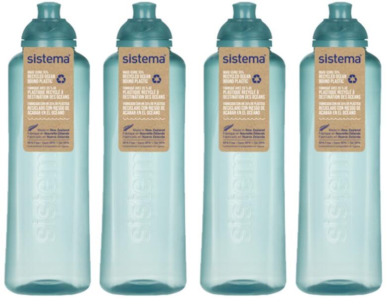 Az újrahasznosított Sistema® Ocean Bound Swift Squeeze Twist ‘n’ Sip 480 ml 4 pack kulacs 35%-ban vizekből, strandokról és tengerpartokról gyűjtött műanyagból készült, így nem kerül az óceánba.