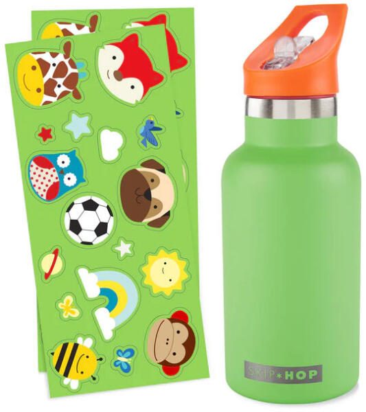 Skip Hop Fľaša s nálepkami so slamkovým náustkom nerezová zelená 380 ml, 4r+