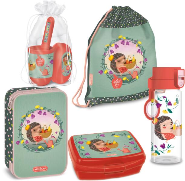 Sünis iskolai csomag – Apple Pie kollekció < /strong>Készülj stílusosan és praktikusan az iskolára ezzel a kedves, bájos, sünis csomaggal! Az Ars Una Apple Pie kollekció minden eleme harmonizáló designnal és kiváló minőségű, gyermekbarát anyagokkal készült, így tökéletes választás a süniket kedvelő kislányok számára. A csomag tartalma: