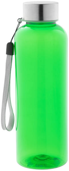 BPA-mentes RPET műanyag kulacs rozsdamentes acél kupakkal és hordszíjjal, 500 ml. Nem alkalmas szénsavas italok tárolására.