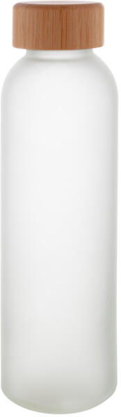 Homokfúvott üvegből készült kulacs bambusz tetővel, 500 ml. Nem alkalmas szénsavas italok tárolására.