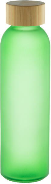Homokfúvott üvegből készült kulacs bambusz tetővel, 500 ml. Nem alkalmas szénsavas italok tárolására.