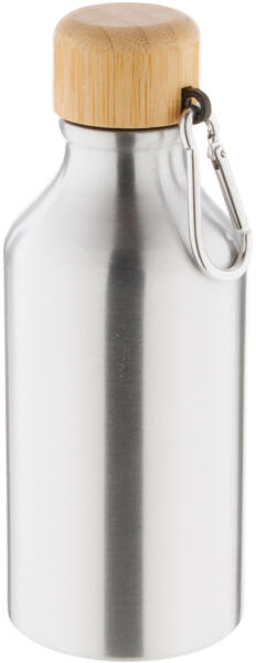 Alumínium kulacs bambusz kupakkal és karabinerrel, 400 ml.