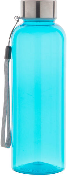 BPA-mentes RPET műanyag kulacs rozsdamentes acél kupakkal és hordszíjjal, 500 ml. Nem alkalmas szénsavas italok tárolására.