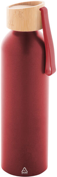 Újrahasznosított alumínium kulacs bambusz tetővel és hozzáillő színű szilikon hordszíjjal, 600 ml.
