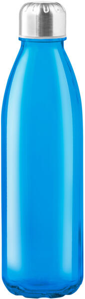 Áttetsző üveg kulacs, rozsdamentes acél kupakkal, 650 ml. Nem alkalmas szénsavas italok tárolására.