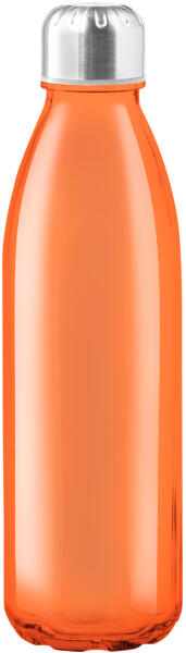 Áttetsző üveg kulacs, rozsdamentes acél kupakkal, 650 ml. Nem alkalmas szénsavas italok tárolására.