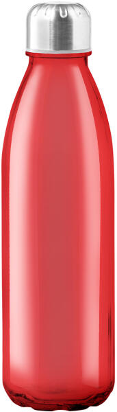 Áttetsző üveg kulacs, rozsdamentes acél kupakkal, 650 ml. Nem alkalmas szénsavas italok tárolására.