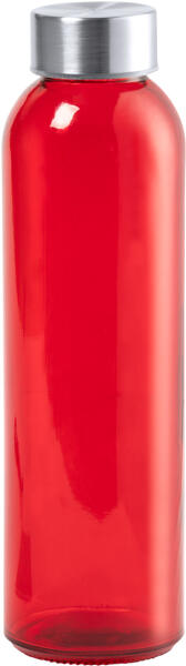 Átlátszó üveg kulacs BPA-mentes anyagból, rozsdamentes acél kupakkal, 500 ml. Ajándékdobozzal szállítjuk. Nem alkalmas szénsavas italok tárolására.