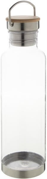 Tritan BPA-mentes kulacs, rozsdamentes acél talppal és akasztós kupakkal, bambusz betéttel, 800 ml. Nem alkalmas szénsavas italok tárolására.